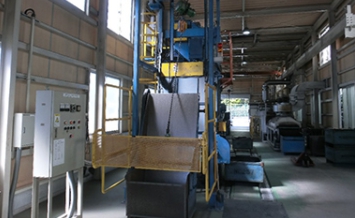 배치식의 샷 블라스트입니다. 상대적으로 작은 제품의 청소에 적합합니다. 본체 내부에서 제품을 벨트 컨베이어에 따라 교반하고 연소합니다. 300Kg급, 500Kg급의 2기종을 준비하고 있습니다.