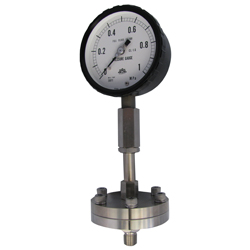 이 다이어프램 압력 게이지는 측정 유체가 고온에 있는 장소에서 사용할 수 있습니다.