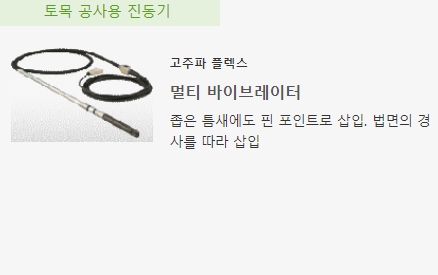 강도가 강한 콘크리트를 타설하기 위해 내부의 기포를 제거하고 콘크리트의 밀도를 높이고 골재가 균등하게 분포하도록 강력한 진동 전달을주는 멀티 바이브레이터입니다.